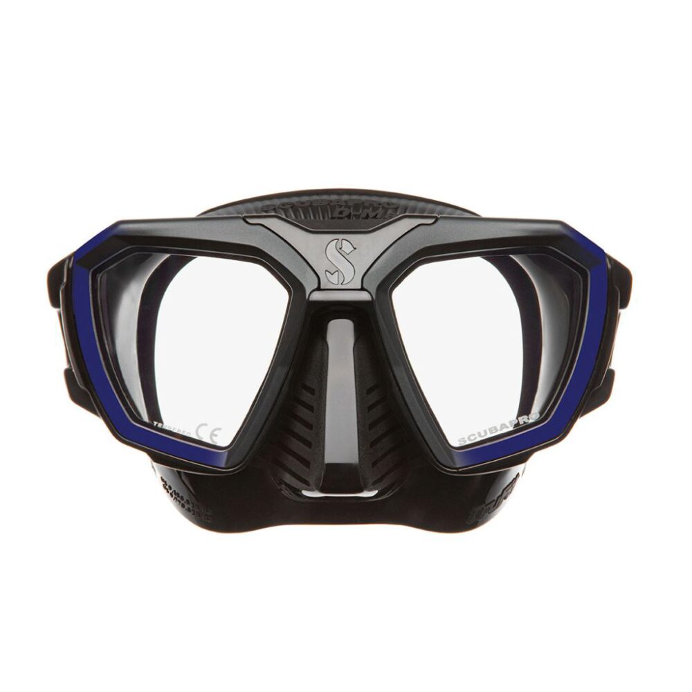 Included in the durable molded fabric box: mask delivered with blue mask frames, all black colored frames, a HUD hands-free dive computer mount and an all-black Comfort Strap.